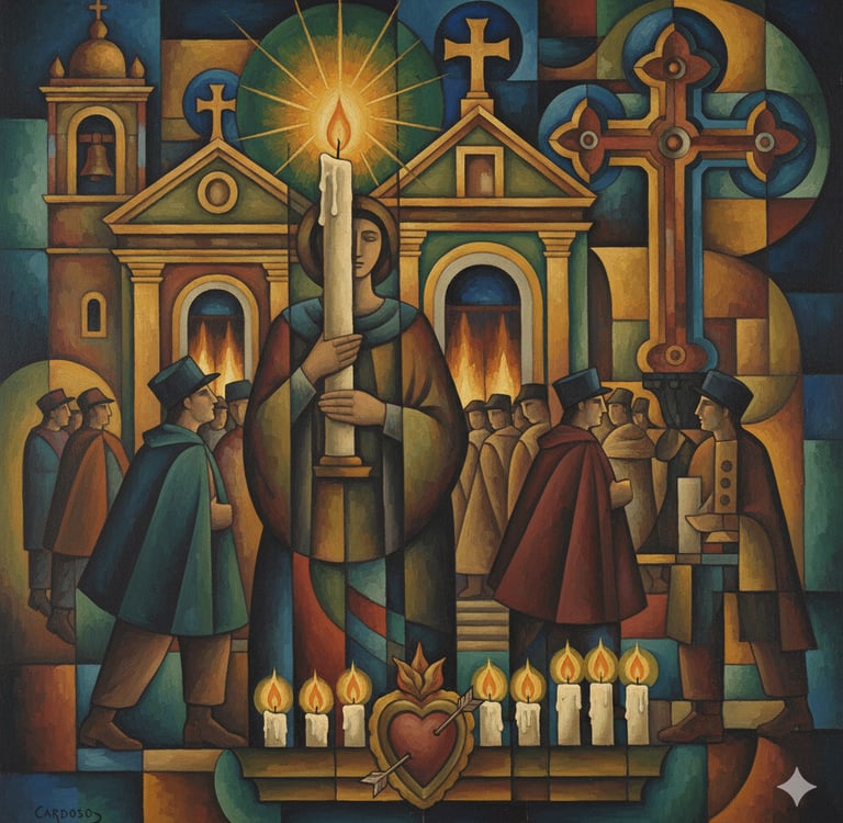 Para além dos santos, observa-se a estrutura organizacional da fé: as irmandades e confrarias. Estas instituições leigas foram, durante séculos, responsáveis pela assistência social, pelos funerais e pela organização das grandes festas.