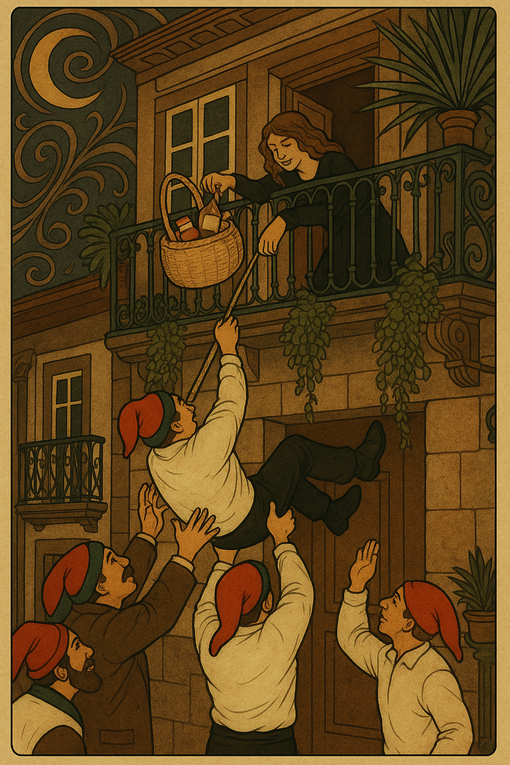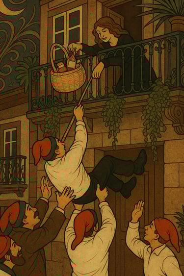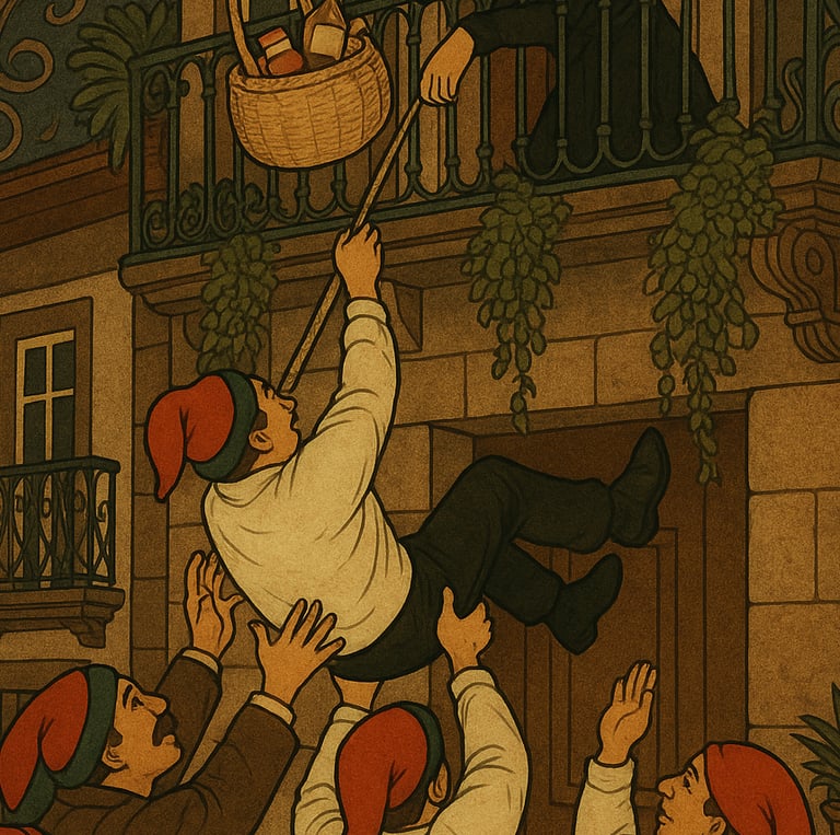 No dia 5 de Dezembro, pela uma da madrugada, saía uma música, indo na frente os estudantes, que iam às posses, isto é, a certas casas, em que os recebiam dando-lhes umas uvas (rua de S. Dâmaso), outras figos e aguardente (casa do professor Venâncio e António Pereira da Silva) e outras doces e vinho tinto.